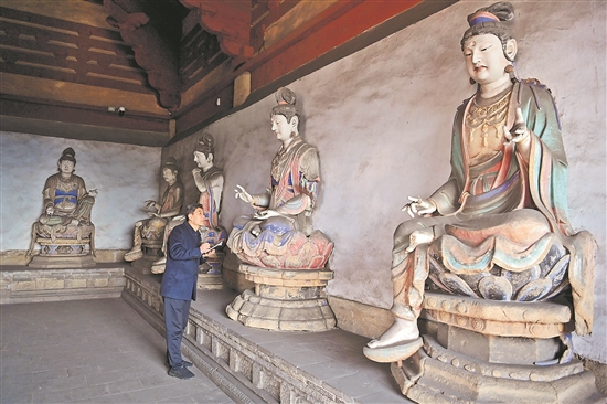 3月16日,在法興寺圓覺殿,張宇飛記錄宋代彩塑的保存狀況。