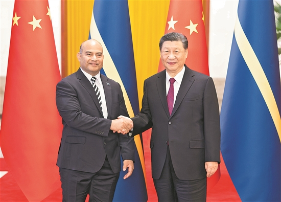 習(xí)近平指出,今年1月,瑙魯作出堅(jiān)持一個(gè)中國(guó)原則、同中國(guó)復(fù)交的政治決斷,這是符合歷史大勢(shì)、順應(yīng)時(shí)代潮流之舉。友好不分先后,只要開(kāi)啟,就會(huì)有光明前途。合作不論大小,只要真誠(chéng),就會(huì)有豐碩成果。中瑙關(guān)系已經(jīng)翻開(kāi)新的歷史篇章。中方愿同瑙方一道,開(kāi)創(chuàng)中瑙關(guān)系的美好未來(lái),更好造福兩國(guó)人民。