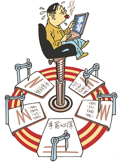 教師教案必須手寫、學習筆記必須手寫、匯報總結(jié)必須手寫……不可否認,一些部門和單位要求相關(guān)材料必須手寫,有一定的合理性,比如為促使工作人員深度思考、方便日后核驗等,但如果類似要求過了頭,出現(xiàn)凡事都要手寫,甚至異化為“留痕”的表演工具,不僅會消耗工作人員大量的時間、精力,還會助長形式主義的不良風氣。眼下,“寫字機器人”一些購買者的故事里難掩以科技手段變相造假、糊弄上級的用心。這事令人尷尬。