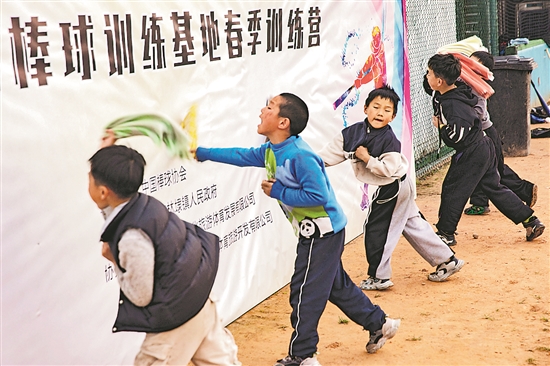 近日,小球員進(jìn)行棒球訓(xùn)練。
