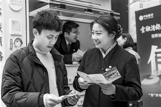 近日,中信銀行北城天街支行金融網(wǎng)格員邵曼(右)給市民宣講金融反詐知識。為防范涉眾金融風險,國家金融監(jiān)督管理總局重慶監(jiān)管局指導轄區(qū)金融機構與街道、社區(qū)、商圈、園區(qū)等一道深入網(wǎng)格開展防范電信詐騙、防范非法集資等公益宣傳。新華社記者 黃偉 攝