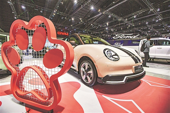 這是當?shù)貢r間3月27日在泰國曼谷國際車展上拍攝的歐拉好貓汽車。當日,第45屆曼谷國際車展開幕,吸引大批觀眾前來參觀。眾多中國汽車品牌也在本次車展上亮相。新華社記者 王騰 攝