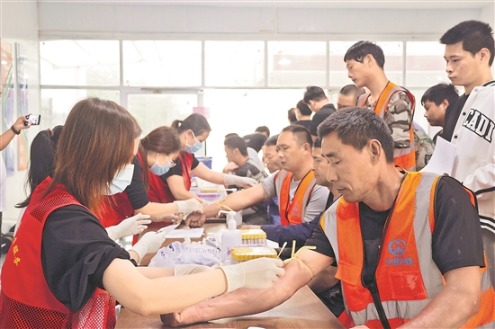 當日,項目部邀請回龍鎮(zhèn)醫(yī)院體檢中心開展現(xiàn)場健康體檢,重點檢查農(nóng)民工職業(yè)病患病情況,有針對性地對施工一線易患疾病進行預防,切實將關愛農(nóng)民工工作抓細抓實。