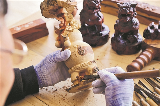 山東省濱州市沾化區(qū)大高鎮(zhèn)發(fā)揮棗木資源優(yōu)勢,將木藝產(chǎn)業(yè)與非遺、創(chuàng)意設(shè)計有效融合,利用廢棄棗木創(chuàng)作生產(chǎn)鎮(zhèn)尺、手杖等棗木藝術(shù)品,打造木雕特色產(chǎn)業(yè),助推當(dāng)?shù)亟?jīng)濟發(fā)展。新華社記者 范長國 攝