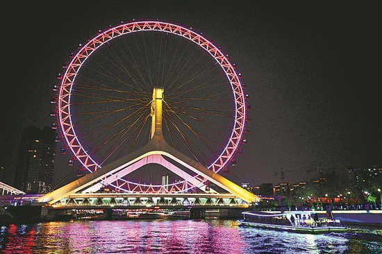 3月28日,海河游船行駛在天津海河永樂橋附近。當(dāng)晚,“運(yùn)河向津來”——第七屆天津海河文化旅游節(jié)啟幕。本屆海河文化旅游節(jié)以海河觀光帶為主軸,將游覽參觀與步入式賞景、沉浸式體驗(yàn)、文創(chuàng)演藝等相結(jié)合。新華社記者 孫凡越 攝