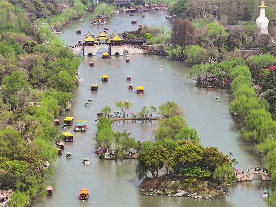 4月4日,人們在江蘇揚州瘦西湖風景區(qū)游玩。當日是清明假期首日,人們走出家門,來到戶外踏青、游玩,享受春光。