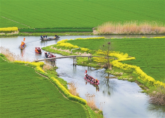 當(dāng)日是清明節(jié),江蘇省興化市舉行一年一度的茅山會船盛會,選手齊聚茅山西大河,參加競技和表演。茅山會船于2014年被列入國家級非物質(zhì)文化遺產(chǎn)名錄。