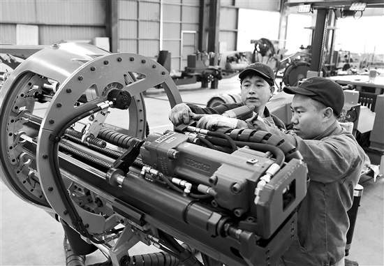 4月2日,工人在河北省秦皇島市昌黎縣一家工程機(jī)械設(shè)備企業(yè)的生產(chǎn)車間工作。