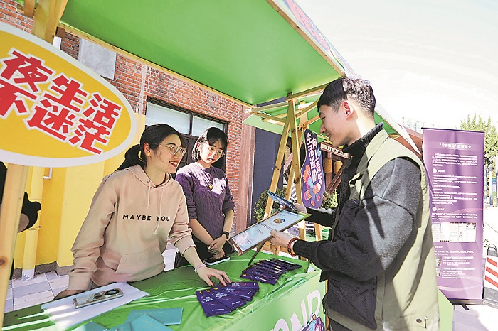 3月29日,南京101名潮里園區(qū)集市,“鼓樓青年夜校”的宣傳攤位。