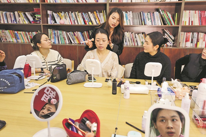 3月28日晚,南京江北新區(qū)石佛社區(qū)青年夜校形象管理課程。