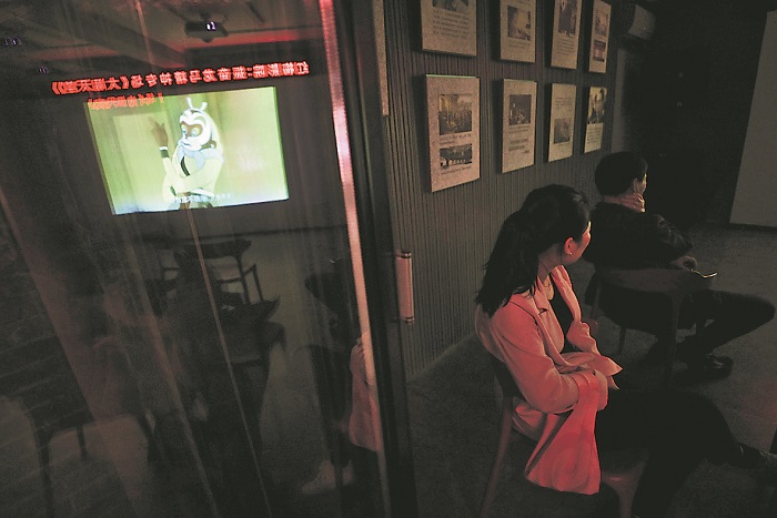 4月1日晚,南京市玄武區(qū)小紅梅信仰生活空間觀影活動(dòng)正在播放《大鬧天宮》。