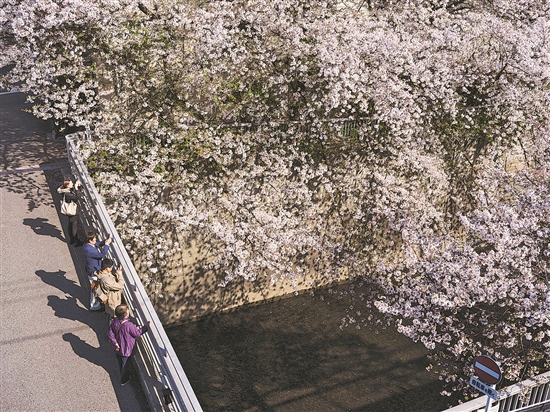 當(dāng)?shù)貢r(shí)間4月10日,人們在日本東京神田川沿岸賞櫻。新華社記者 張笑宇 攝