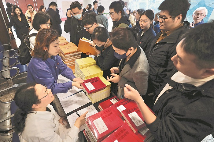 當(dāng)日,江蘇省暨南京市國防工業(yè)“產(chǎn)改有我”職工讀書節(jié)在金陵圖書館啟動,活動由江蘇省機冶石化工會工作委員會、南京市國防工業(yè)工會聯(lián)合會、南京中共黨史學(xué)會、金陵圖書館共同主辦。工會干部、勞模工匠、一線班組長、職工代表等200余人參加活動。本報記者 劉金夢 攝
