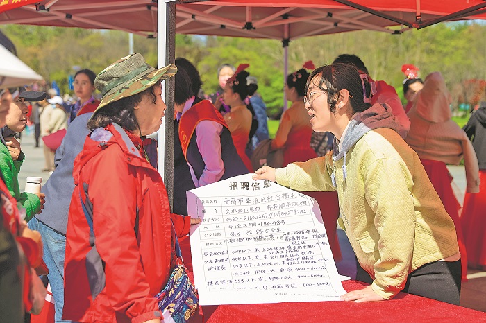 4月17日,“筑夢李滄養(yǎng)老 護(hù)佑銀發(fā)安康”養(yǎng)老服務(wù)人才專場招聘會暨養(yǎng)老服務(wù)大集在山東省青島市李滄文化公園廣場舉辦。招聘會現(xiàn)場,10家養(yǎng)老機(jī)構(gòu)提供養(yǎng)老護(hù)理員、醫(yī)護(hù)、院長助理等各類就業(yè)崗位需求百余個,吸引眾多求職者前來咨詢應(yīng)聘。近年來,李滄區(qū)大力開展養(yǎng)老護(hù)理職業(yè)技能培訓(xùn),不斷培養(yǎng)養(yǎng)老服務(wù)人才。本報通訊員 張鷹 攝