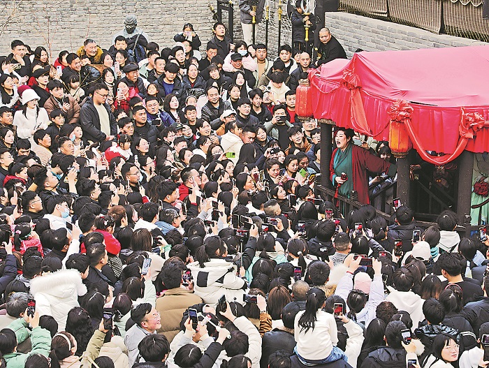 “王婆說媒”的走紅帶火了當(dāng)?shù)芈糜?。專業(yè)人士認(rèn)為,這檔節(jié)目是將古代相親文化場(chǎng)景進(jìn)行現(xiàn)代演繹,沉浸式互動(dòng)體驗(yàn)直擊年輕人內(nèi)心。