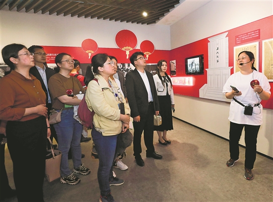 4月23日,江蘇南京市工人文化宮,工人們正在參觀南京工運(yùn)史展。