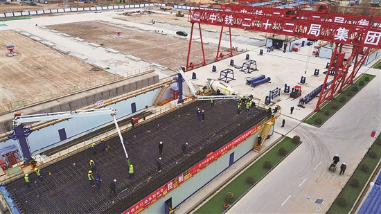 津?yàn)H高鐵天津樞紐工程開(kāi)始箱梁澆筑