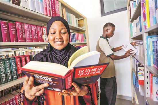 在坦桑尼亞達累斯薩拉姆大學,孔子學院圖書館常常座無虛席,就連書架前都擠滿了學生,這座圖書館被稱為“絲路書屋”。圖為近日,當?shù)貙W生在坦桑尼亞達累斯薩拉姆大學孔子學院圖書館查閱書籍。新華社發(fā)