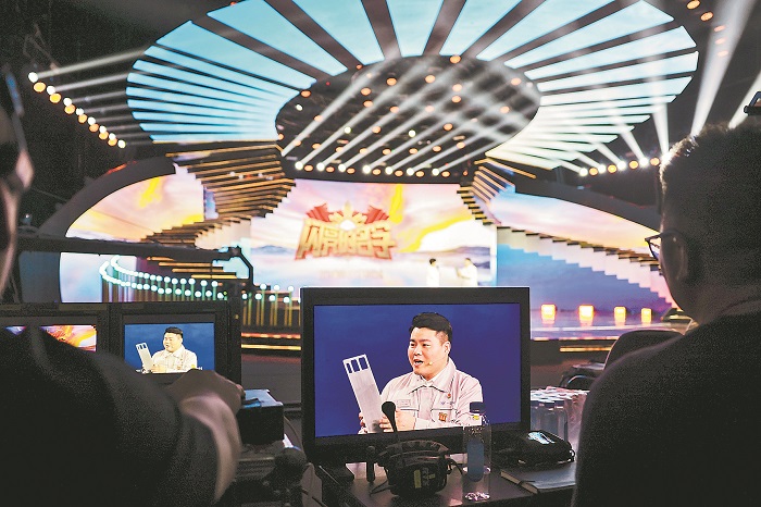 4月24日,北京,2024年“最美職工”發(fā)布儀式錄制現(xiàn)場,來自一汽解放汽車有限公司商用車開發(fā)院試制部的數(shù)控機(jī)床技能師時敬龍?jiān)谥v述自己的故事。