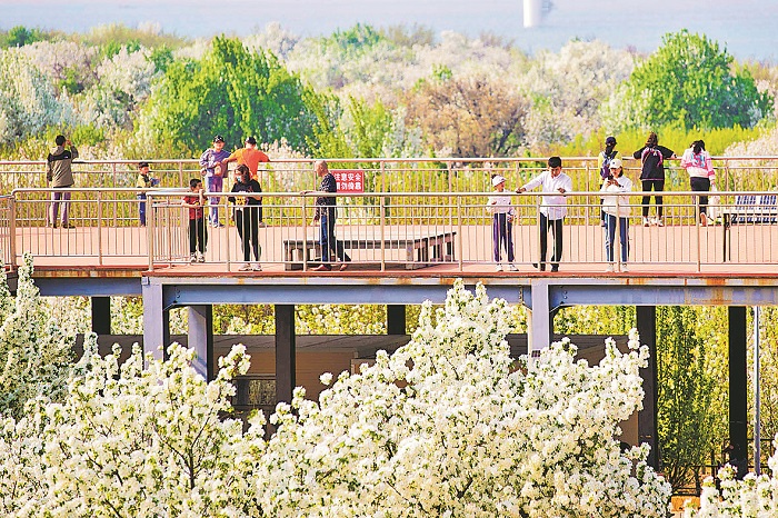近日,河北省張家口市懷來縣小南辛堡鎮(zhèn)大古城村印象海棠公園中,游人正在園中賞花游玩。據(jù)了解,小南辛堡鎮(zhèn)是目前全國規(guī)模最大的八棱海棠栽培基地,面積和產(chǎn)量均居全國首位。近年來,當?shù)負屪ゾ┙蚣絽f(xié)同發(fā)展和京張體育文化旅游帶建設機遇,打造出京張體育文化旅游帶上的新名片。通過發(fā)揮“文化+旅游+節(jié)慶”的作用,持續(xù)舉辦海棠花節(jié),以花為媒,賦能鄉(xiāng)村振興。本報記者 王偉偉 攝