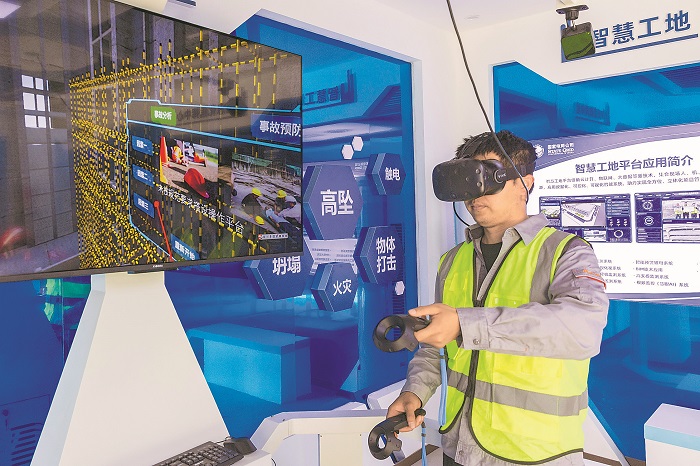 該基地設(shè)立VR安全教育體驗(yàn)館,定期分批組織建筑工人開展安全教育培訓(xùn)。通過VR虛擬場(chǎng)景,模擬進(jìn)行高處墜落、欄桿傾倒、觸電、高空墜物機(jī)械撞擊等體驗(yàn),提高工人們的安全防范意識(shí)和自我保護(hù)技能。