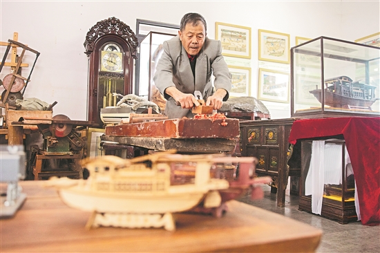 日前,浙江省嘉興市秀洲區(qū)油車港鎮(zhèn)的一處非遺工坊內(nèi),72歲的嘉興市非遺造船技藝傳承人張來生正在制作紅船模型。嘉興作為紅船起航地,每年都會吸引眾多的游客來此參觀游覽,感受當?shù)氐募t色文化。近年來,嘉興圍繞自身文化特色,將非遺木作與紅色文化相結合,邀請老木匠手工制作,開發(fā)出別具特色的文旅產(chǎn)品,受到游客追捧。