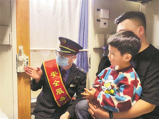 近期,鐵路迎來旅游探親客流高峰,帶兒童的旅客也逐漸增多。為確保兒童出行安全、愉快,中國鐵路呼和浩特局集團(tuán)包頭客運(yùn)段昆明車隊(duì)專門配備了兒童書刊、玩具等,確保兒童安全快樂度過乘車時(shí)光,受到廣大小朋友和旅客的好評和認(rèn)可?!傲熊囆『蝤B之家”的暖心服務(wù),讓旅客出行更加便捷放心。本報(bào)通訊員 李娜 攝