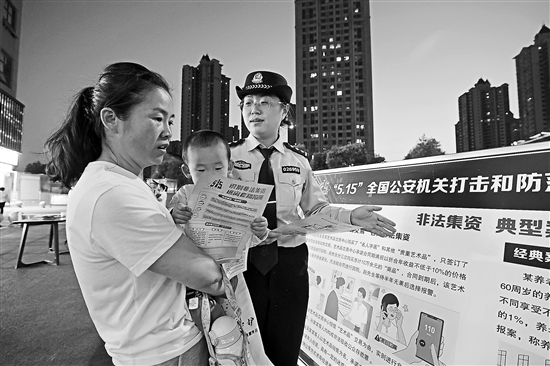 5月13日,安徽省淮北市公安局相山分局經(jīng)偵大隊(duì)民警向市民宣傳經(jīng)濟(jì)犯罪的危害和防范措施。本報(bào)通訊員 張鋒 攝