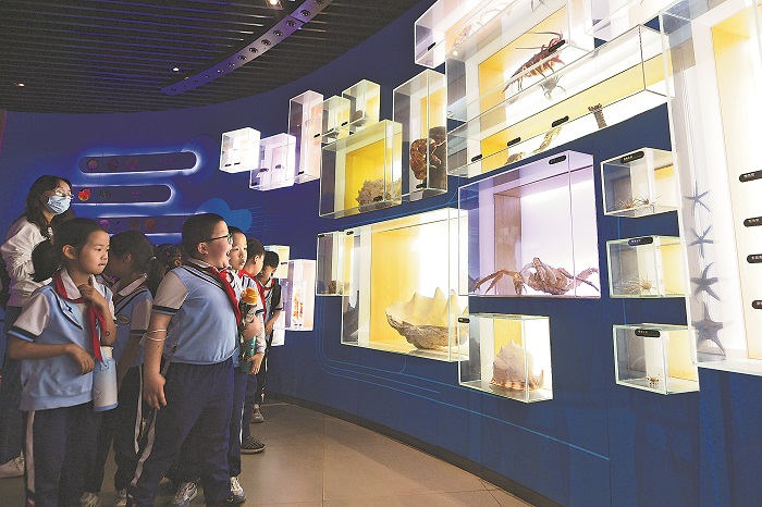 5月16日,在山東青島海底世界海洋生物館,老師帶領(lǐng)學(xué)生們開展海洋科普研學(xué)活動,通過科普海洋知識、觀察海洋生物、觀察生物標(biāo)本等方式,讓孩子們感受海洋世界的奇妙,提升海洋生態(tài)保護(hù)意識,迎接“國際博物館日”。