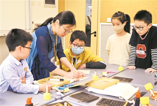 5月19日,在上海市逸夫職業(yè)技術(shù)學(xué)校,小學(xué)生們在體驗活字印刷。當(dāng)日,2024年上海職業(yè)教育活動月正式啟動,通過“職業(yè)體驗”“優(yōu)秀傳統(tǒng)文化進校園”等系列活動,展示上海職業(yè)教育改革的成果、經(jīng)驗和貢獻。新華社記者 劉穎 攝