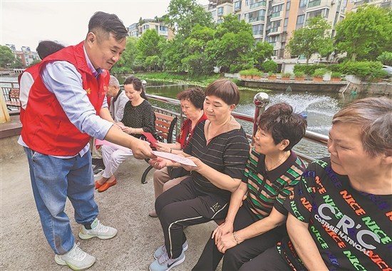 5月21日,浙江省湖州市吳興區(qū)飛英街道余家漾社區(qū)月漾苑小區(qū)開展國際生物多樣性日主題活動,志愿者通過開展相關(guān)知識宣傳、在小區(qū)中心湖和河道投放魚苗改善水域生態(tài)平衡等方式倡導(dǎo)居民樹立生物多樣性保護(hù)意識。