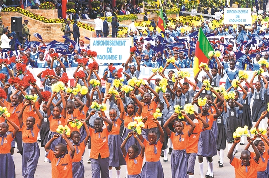 當地時間5月20日,學生列隊行進在喀麥隆首都雅溫得舉行的國慶日活動上。當天是喀麥隆國慶日。新華社發(fā) (科普索 攝)