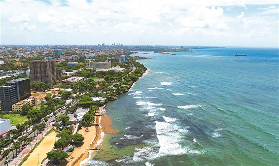 這是當(dāng)?shù)貢r間5月21日在多米尼加首都圣多明各拍攝的海岸線(無人機照片)。