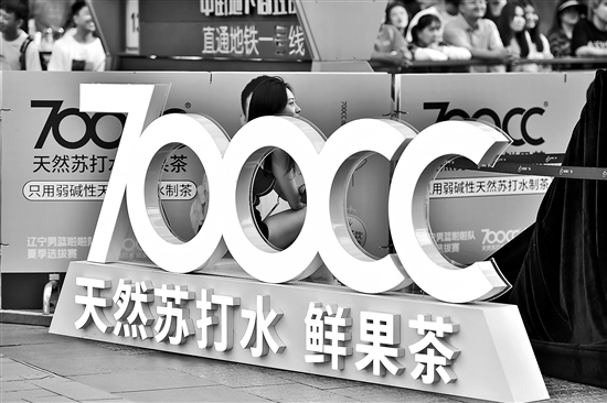 圖為6月29日,遼寧沈陽市,700CC天然蘇打水鮮果茶。視覺中國 供圖