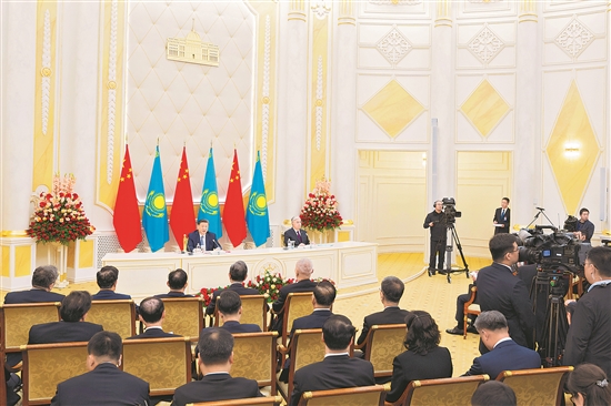 我們將高質(zhì)量共建“一帶一路”,推動兩國務(wù)實合作取得更多新成果。雙方確立了盡早實現(xiàn)雙邊貿(mào)易額翻番的新目標,商定不斷深化經(jīng)貿(mào)、投資、產(chǎn)能、互聯(lián)互通、能源等傳統(tǒng)領(lǐng)域合作,執(zhí)行好經(jīng)貿(mào)合作發(fā)展規(guī)劃落實路線圖,推動更多產(chǎn)能合作項目開花結(jié)果,加快推進跨里海國際運輸路線和中哈第三條跨境鐵路建設(shè)。雙方還將共同培育關(guān)鍵礦產(chǎn)、新能源、科技創(chuàng)新、航空航天、數(shù)字經(jīng)濟等領(lǐng)域合作新增長點,助力兩國務(wù)實合作不斷提質(zhì)升級。