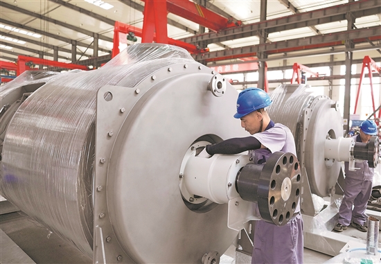 7月3日,工人在河北省秦皇島市撫寧區(qū)一家新能源設(shè)備企業(yè)的生產(chǎn)車間工作。