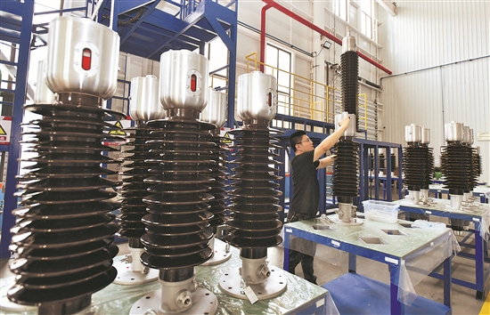 7月6日,河北省河間市一家電力裝備制造科技型企業(yè)的工人在生產(chǎn)車(chē)間內(nèi)工作。