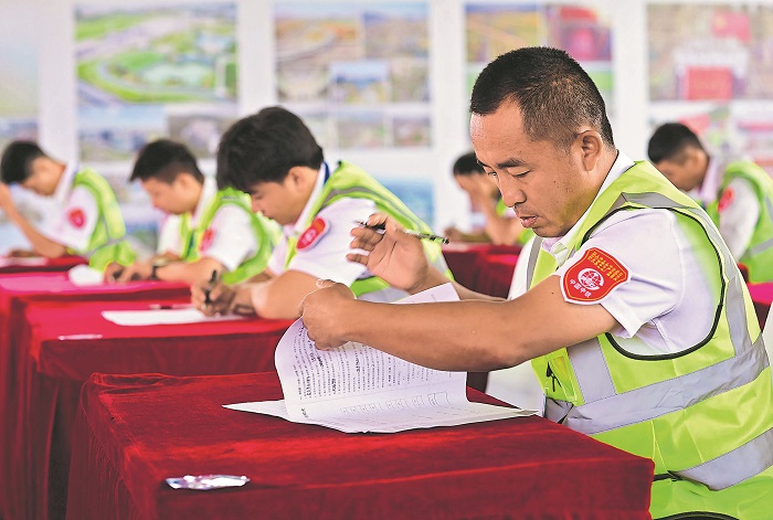 7月5日,中鐵上海工程局安全生產(chǎn)技能大賽在內(nèi)蒙古鄂爾多斯金龍重卡總部基地項目建設(shè)工地舉行,12支參賽隊的61名選手分別在安全隱患排查、安全生產(chǎn)知識搶答、安全生產(chǎn)理論知識考試等項目中,比智慧、賽技能,提高安全意識,促進安全生產(chǎn)。