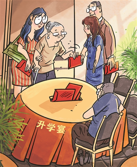 隨著一張張高考錄取通知書的送抵,各地餐飲商家開始摩拳擦掌,推出的升學(xué)宴套餐花樣繁多,價(jià)格動輒上萬元。其中,不少升學(xué)宴“掛羊頭賣狗肉”,辦成了“排場宴”“人情宴”。一則,有的家長要面子、搞攀比、講排場;二則,有的家長懷揣“小算盤”,誓將曾經(jīng)給出去的份子錢討回來,甚至有公職人員借機(jī)違紀(jì)斂財(cái)。升學(xué)之喜固然可賀,但大操大辦實(shí)不可取。如此扭曲的人情消費(fèi),助長了奢靡浪費(fèi)歪風(fēng),也容易滋生貪腐問題。對于變了質(zhì)、走了味的升學(xué)宴,當(dāng)及時(shí)喊停,給“人情債”減負(fù),杜絕“舌尖上的浪費(fèi)”,營造文明、節(jié)儉、廉潔的新風(fēng)正氣。