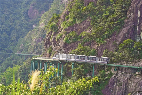 7月11日,由中國中車旗下株洲中車特種裝備科技有限公司研制的30列高山懸崖跨座式單軌游覽車及軌道系統(tǒng),在江西大覺山景區(qū)完成交付。大覺山“懸崖動車”項(xiàng)目全線路均“嵌”于半山腰上,其中三分之一以上線路在懸崖峭壁旁,可讓游客置身海拔850米到1150米高空,兼具“酷、險(xiǎn)、奇”等特點(diǎn)。據(jù)介紹,項(xiàng)目采用6車編組,載員能力為56人。