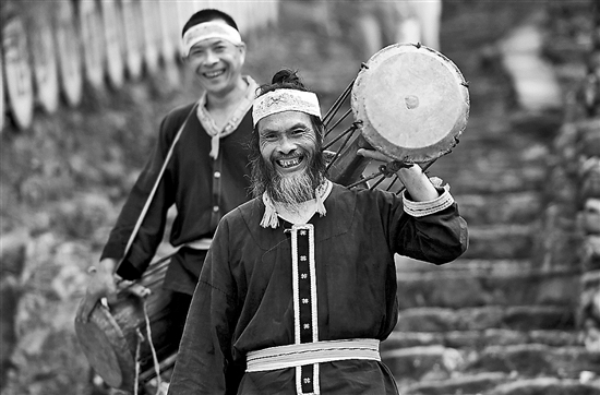 7月10日,廣西金秀瑤族自治縣六巷鄉(xiāng)六巷村下古陳屯,兩位非遺傳承人帶著黃泥鼓去表演。六巷村是當(dāng)?shù)赜忻摹胺沁z村”。非遺已成為助力當(dāng)?shù)匕l(fā)展的重要“助推器”。