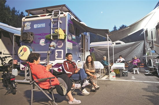 7月11日,游客在興安國家森林公園房車營地內休息。日前,有著“中國林都”美譽的黑龍江省伊春市進入夏季旅游高峰期。涼爽宜人的氣候、富氧的森林公園吸引各地游客前來避暑消夏。近年來,當?shù)貙⑸稚鷳B(tài)旅游業(yè)作為高質量綠色轉型發(fā)展的著力點,通過開發(fā)特色旅游產(chǎn)品、新業(yè)態(tài),打造中國生態(tài)康養(yǎng)旅游目的地。