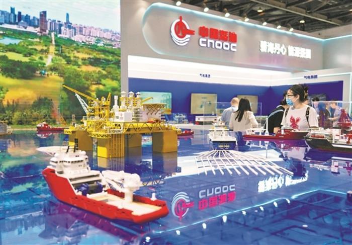 7月13日,參觀者在北京科博會(huì)現(xiàn)場參觀中國海油深水油氣田勘探開發(fā)模型。