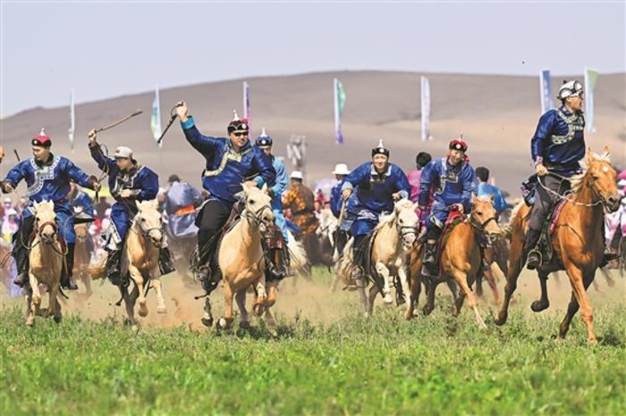 7月14日,“相約草原·遇見那達慕”內(nèi)蒙古第34屆草原那達慕在錫林郭勒盟開幕。本屆那達慕開幕式由“相約草原”“亮麗北疆”“守望相助”3部分組成,樂器、歌舞等演出精彩紛呈,吸引游客前來感受草原文化。