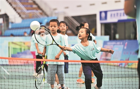 近日,小朋友們?cè)趨⒓泳W(wǎng)球課程的訓(xùn)練。