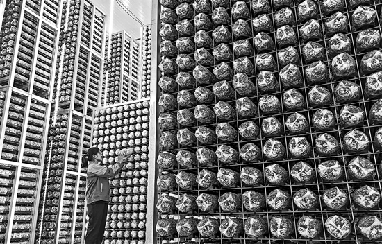7月14日,山東萊西市院上鎮(zhèn)一家菌菇培育加工企業(yè)的工作人員在查看菌棒的生長狀態(tài)。近年來,山東青島萊西市立足農(nóng)業(yè)產(chǎn)業(yè)優(yōu)勢,因地制宜做好“土特產(chǎn)”文章,培育一批鄉(xiāng)村優(yōu)勢特色產(chǎn)業(yè),形成了菌菇等特色產(chǎn)業(yè)集群遍地開花的現(xiàn)代農(nóng)業(yè)發(fā)展模式,可年產(chǎn)各類食用菌培養(yǎng)基3000余萬包,食用菌鮮品2萬余噸,總產(chǎn)值3億元,帶動農(nóng)民致富。