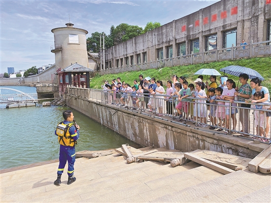 7月16日,“2024年長沙市‘防溺水大篷車’走進城鄉(xiāng)安全教育公益活動”在位于瀏陽河畔的湖南省長沙縣揭幕。在現(xiàn)場觀摩與模擬演練環(huán)節(jié),長沙縣藍天救援隊隊長陳槐提醒孩子們一定要遠離危險水域,保護自身安全。新華社記者 明星 攝