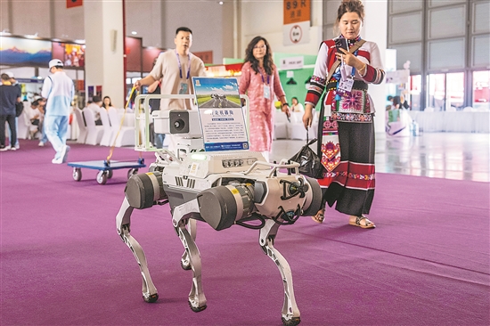 正在昆明舉行的第八屆中國—南亞博覽會上,數(shù)字經(jīng)濟、人工智能、綠色能源、低空經(jīng)濟等領(lǐng)域“科技范”十足的展品吸引眾多觀眾參觀、體驗。新華社記者 胡超 攝