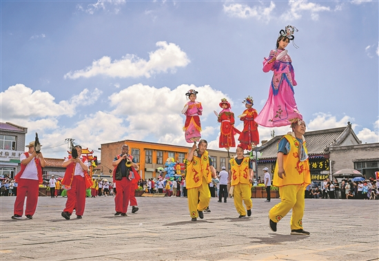 7月25日,腦閣表演隊(duì)伍行進(jìn)在隆盛莊街道上。