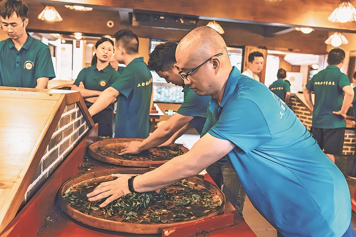 萎凋、做青、殺青、揉捻、干燥……7月23日~31日,由福建省武夷山市總工會聯(lián)合多部門舉辦的2024年武夷山市“工助振興、共富共美”茶葉加工工職業(yè)技能競賽舉行,來自武夷山市的39名決賽選手同臺競技。實操現(xiàn)場,茶香四溢,參賽選手運用壓、碾、搓、揉等獨特手法精心炒制。圖為參賽選手炒制茶青。本報記者 李潤釗 本報通訊員 魏建華 攝